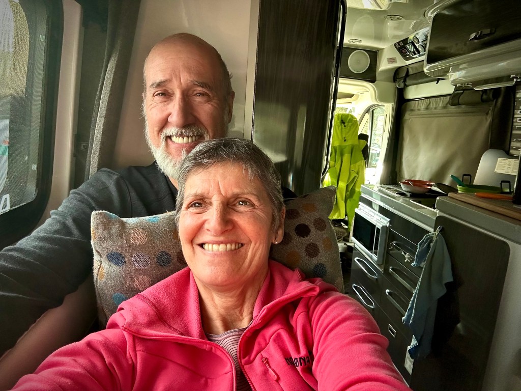Au réveil, c’est -2 degrés Celsius et une fois nos tasses de café remplies pour la route, on se dirige vers Banff. Avant d’enfiler les kilomètres, on profitera de 1 km de rayon de réseau wifi pour payer les comptes, prendre les courriels et publier mes posts. Déjà qu’on n’avait aucun réseau depuis 3 jours !! C’est fou comment on s’habitue à ces p’tites bêtes électroniques !!
