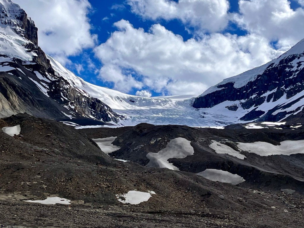 Au passage, on prendra bien soin de s’arrêter au Glacier Athabaska, logé parmi plusieurs autres glaciers qui sont situés dans le Champ de Glaces Columbia. On l’avait déjà admiré 3 années auparavant lors d’un séjour à Banff mais, cette fois-ci, on a le temps de s’y arrêter.