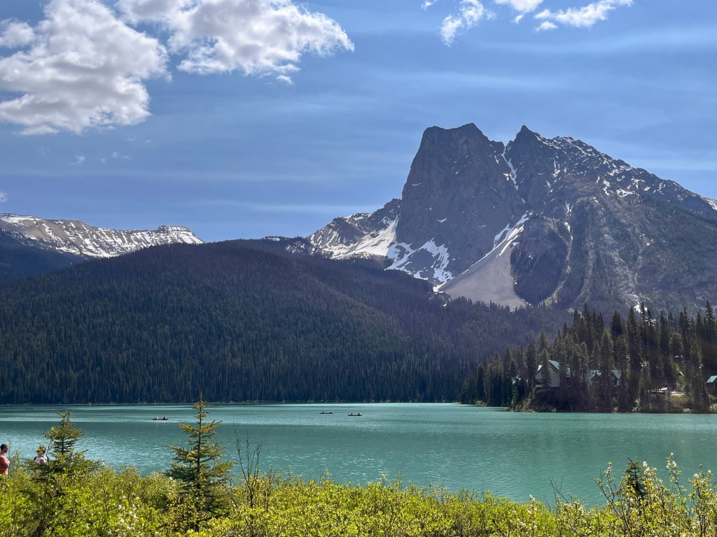 En effet, l’eau du lac est d’un magnifique ton d’émeraude mais, on choisit de laisser la foule derrière pour continuer notre route car, nous devrons affronter Rogers Pass avant d’atteindre Revelstoke et que, tout compte fait, on a vu à ce jour bien d’autres merveilles…