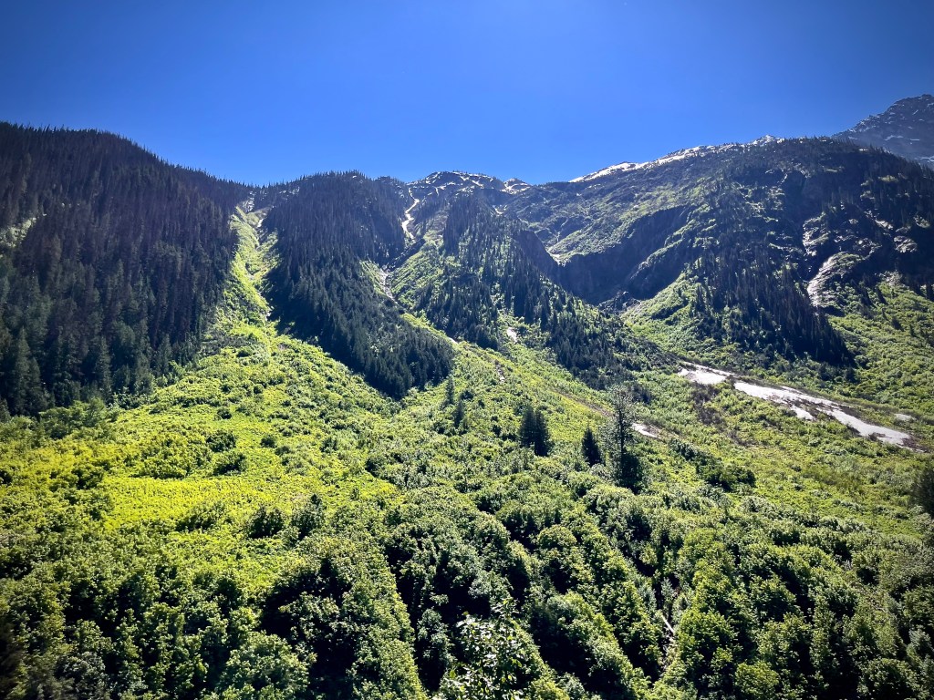 Depuis notre départ, je ne crois pas qu’on ait roulé dans un col aussi prononcé et avec autant de tunnels ! Ça s’explique puisque Rogers Pass, au cœur du Glacier National Park, est une montagne qui culmine à 1330 mètres d’altitude à travers la chaîne des Selkirk Mountains. C’est justement à la suite d’une avalanche meurtrière de 1910 qui tua 58 travailleurs du Canadian Pacific que ces tunnels ont été construits.