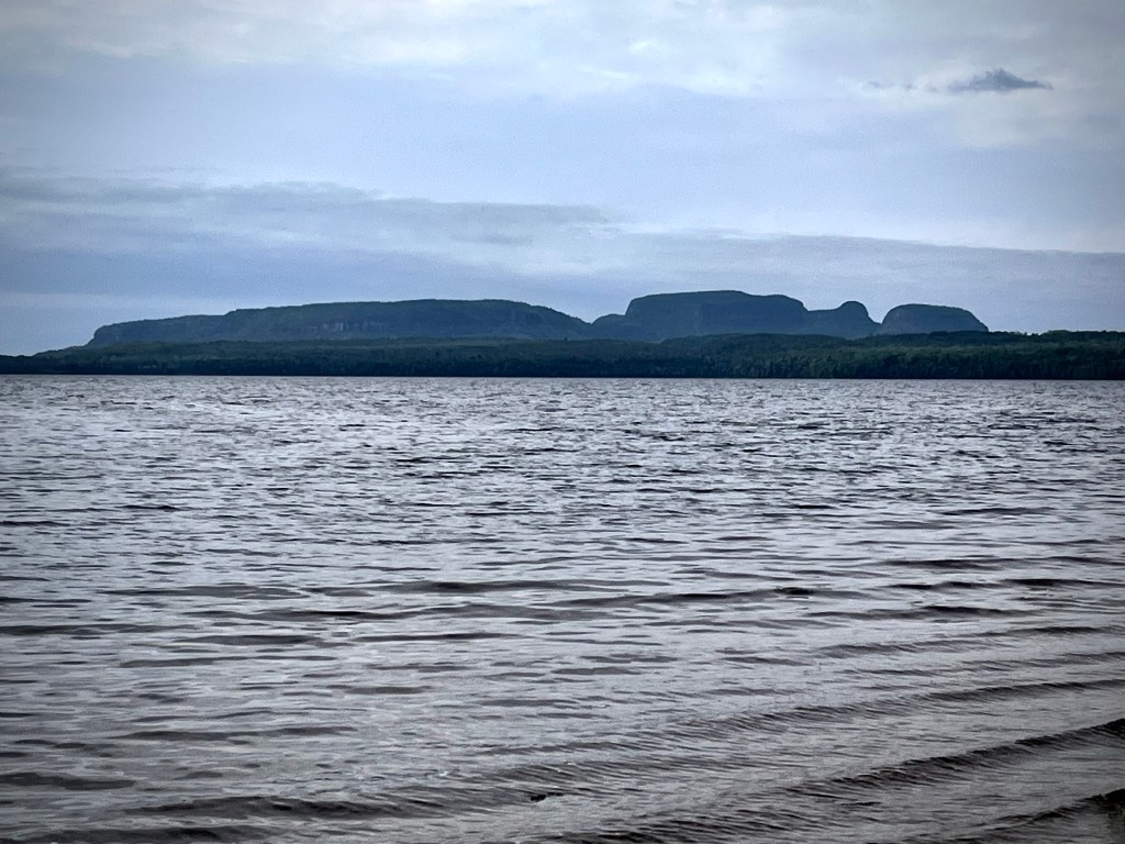 Mais oh comment serons-nous récompensés d’être réglos : un emplacement directement « on-the-beach » au camping Agawa Bay du parc provincial du Lac Supérieur. C’est Beauté qui est content, lui qui souhaitait être assez près de l’eau pour entendre les vagues. Ce sera un vœu exaucé puisque durant cette première nuit, le lac sera très agité et, malgré la température très fraîche, les fenêtres resteront ouvertes sur le doux chant des vagues qui nous berceront comme deux poupons…