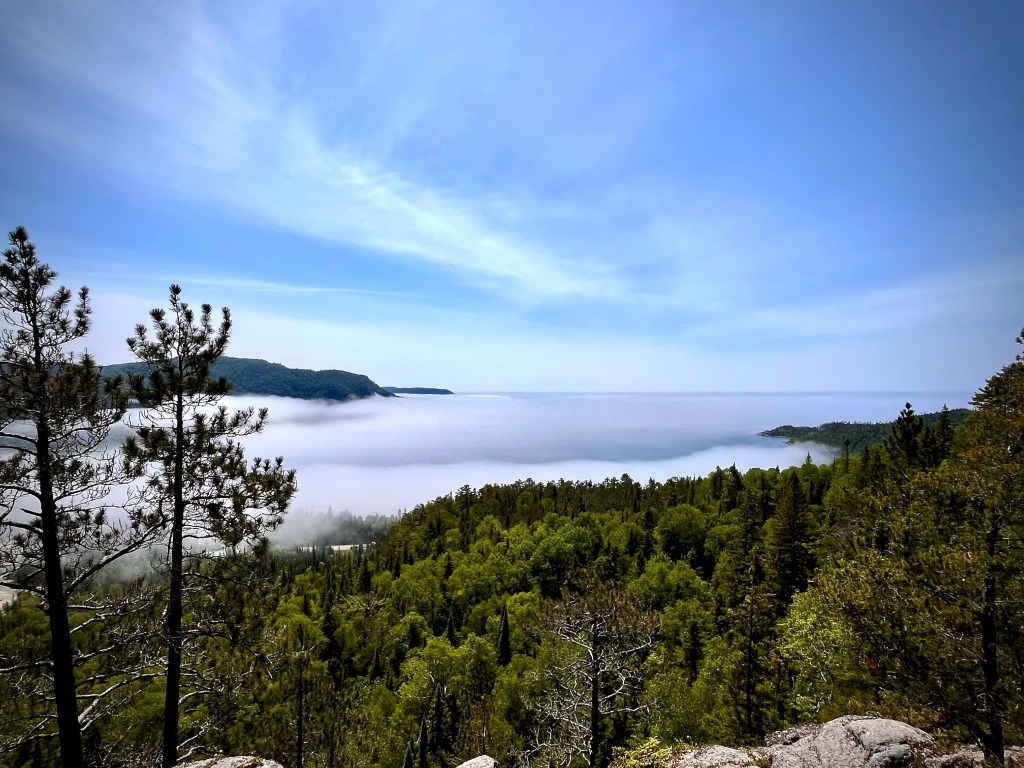Mais penser se fier aveuglément à la météo aux abords du Lac Supérieur s’avère être un exercice d’acceptation puisque qu’à tout moment, la brume peut tout envelopper et vous tenir bien à l’écart de toute vue, si magnifique soit-elle. On aura la chance de prendre quelques photos mais bon, c’est pas comme si on était en manque de belles images durant notre traversée !