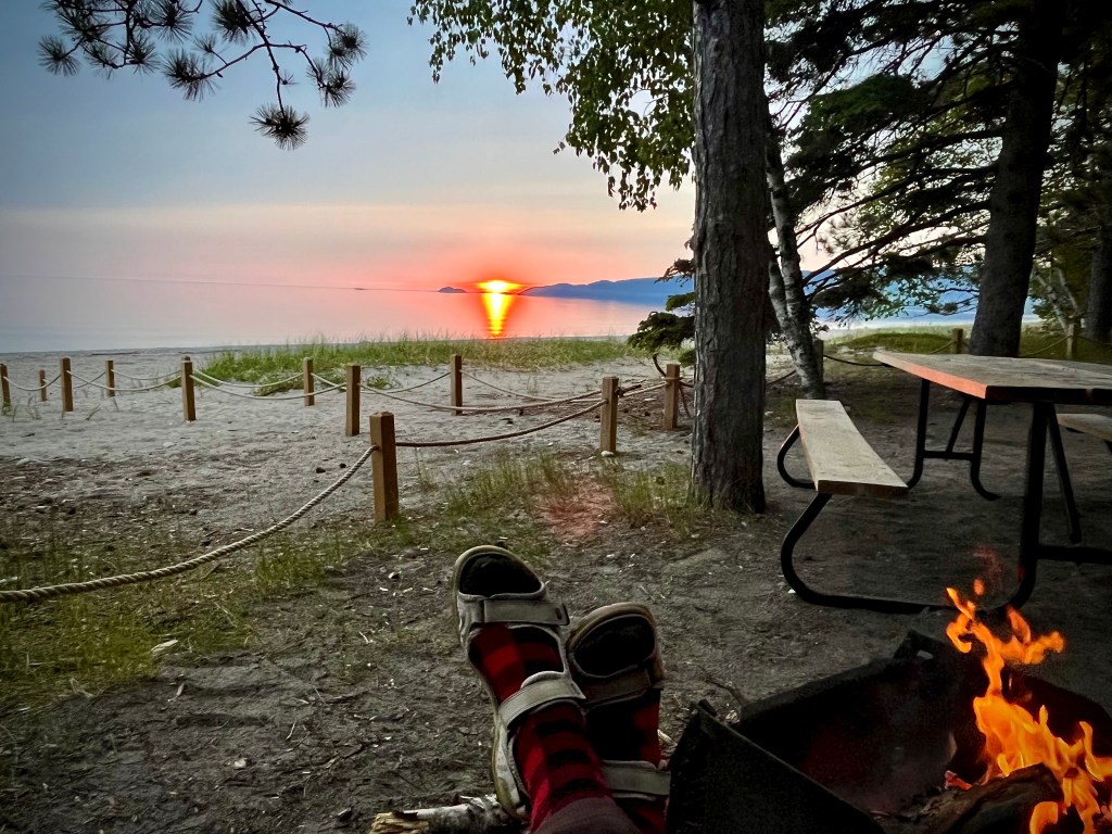 On se déposera en soirée au parc provincial Aaron pour une seule nuitée car l’Ontario, c’est grand et surtout long à traverser ! Le temps de se faire un petit feu de soirée (l’interdiction venait tout juste d’être levée) en compagnie des moustiques et on repartira le lendemain pour poursuivre notre traversée de l’Ontario.