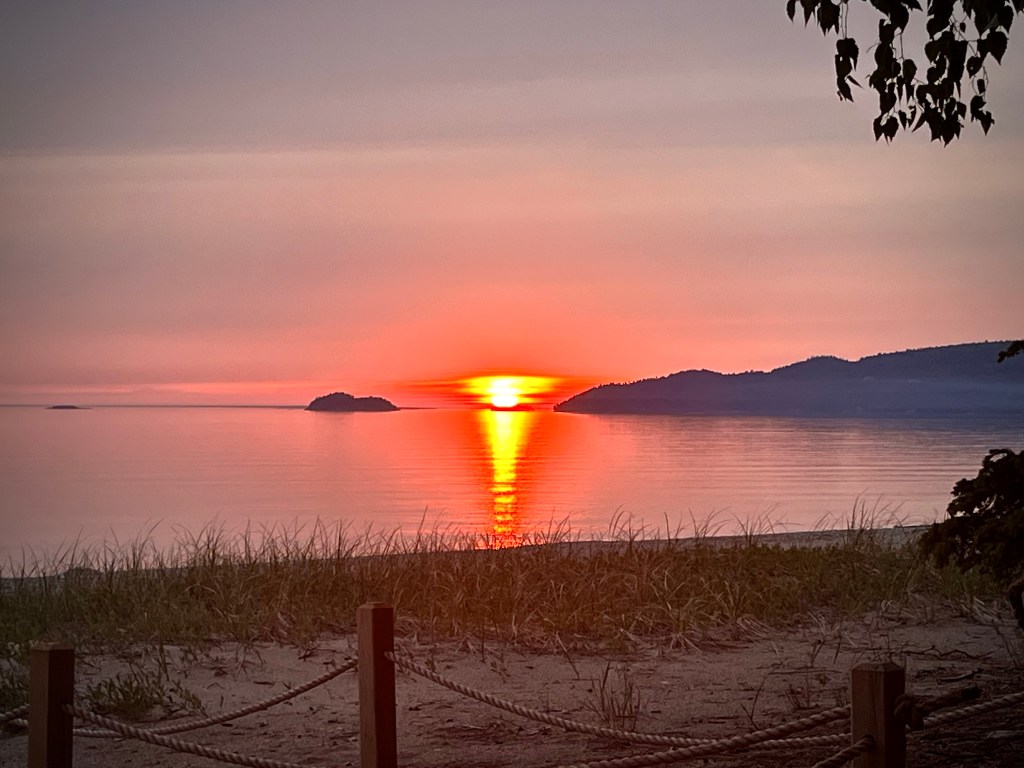 On se dirigera on peu plus loin le long du lac Supérieur où on sent déjà la pluie prochaine… Arrivés au camping, on aura à peine le temps de s’installer, prendre une douche et finir de souper que la pluie commence à tomber et ce sera tout un orage pendant une bonne partie de la nuit ! On aura une pensée pour des campeurs installés un peu plus loin, sur le bord du lac…